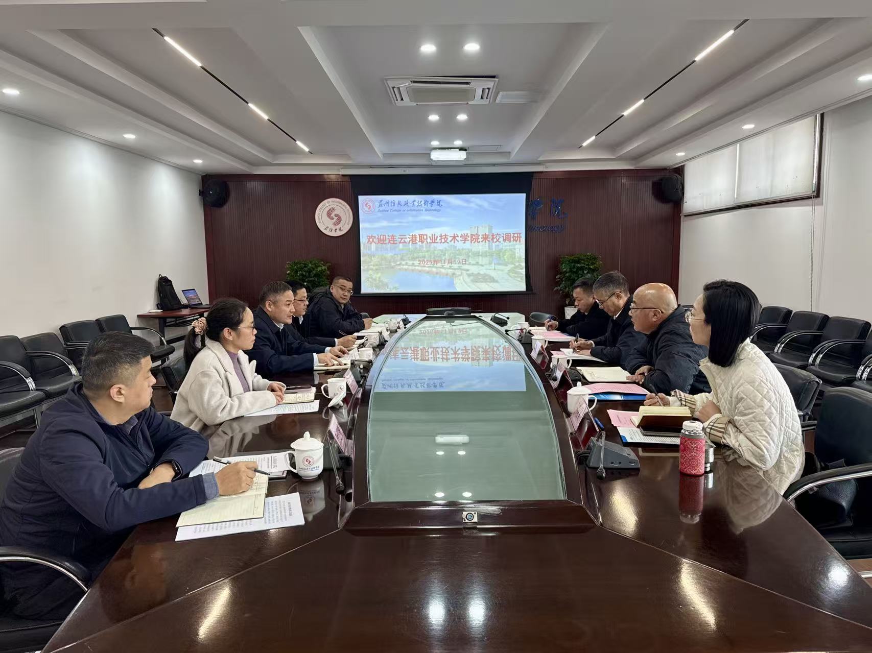 11月19日,连云港职业技术学院党委委员、副院长张永锡一行来我院调研交流。我院党委委员、副院长张成,相关职能部门负责人参加座谈交流。
