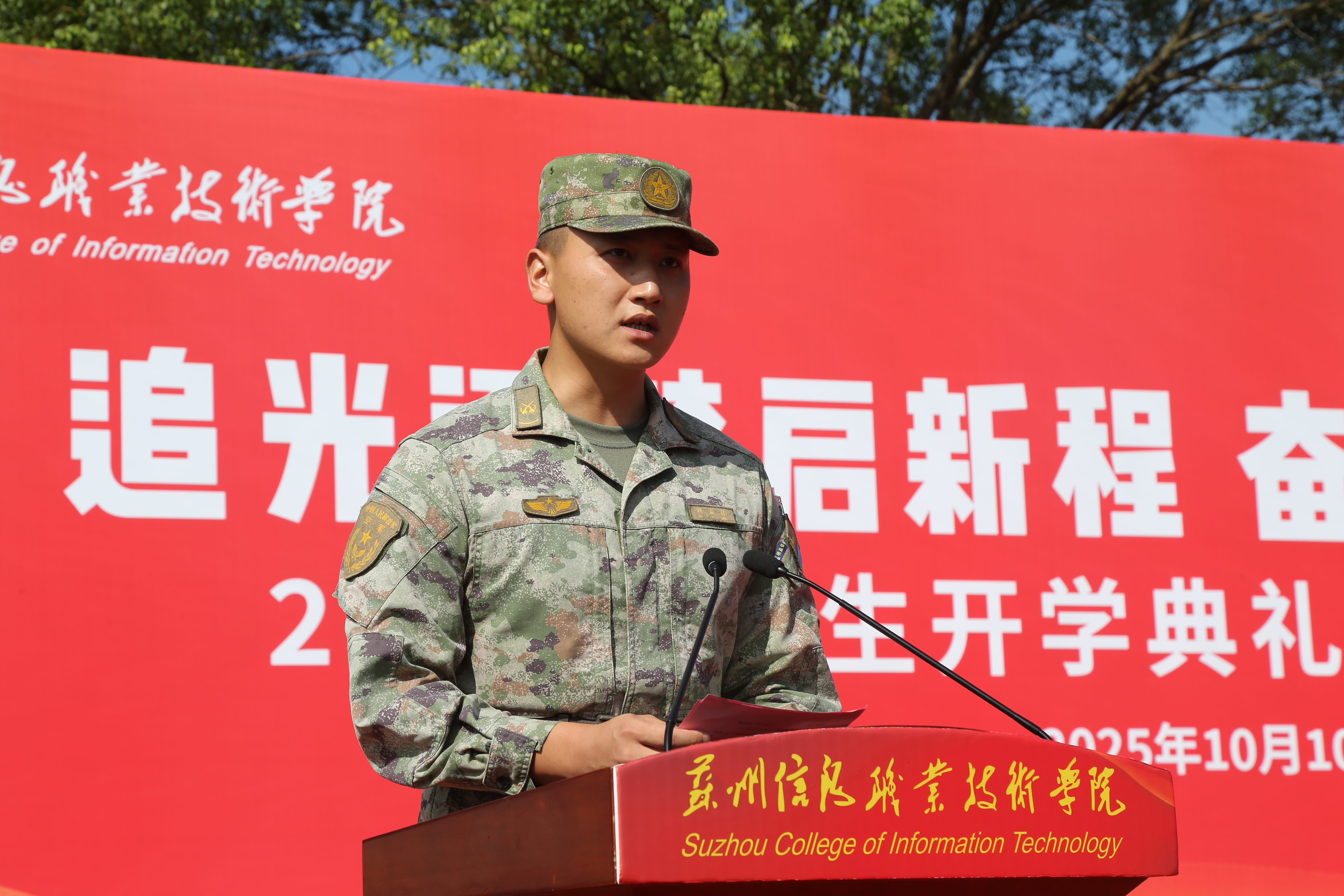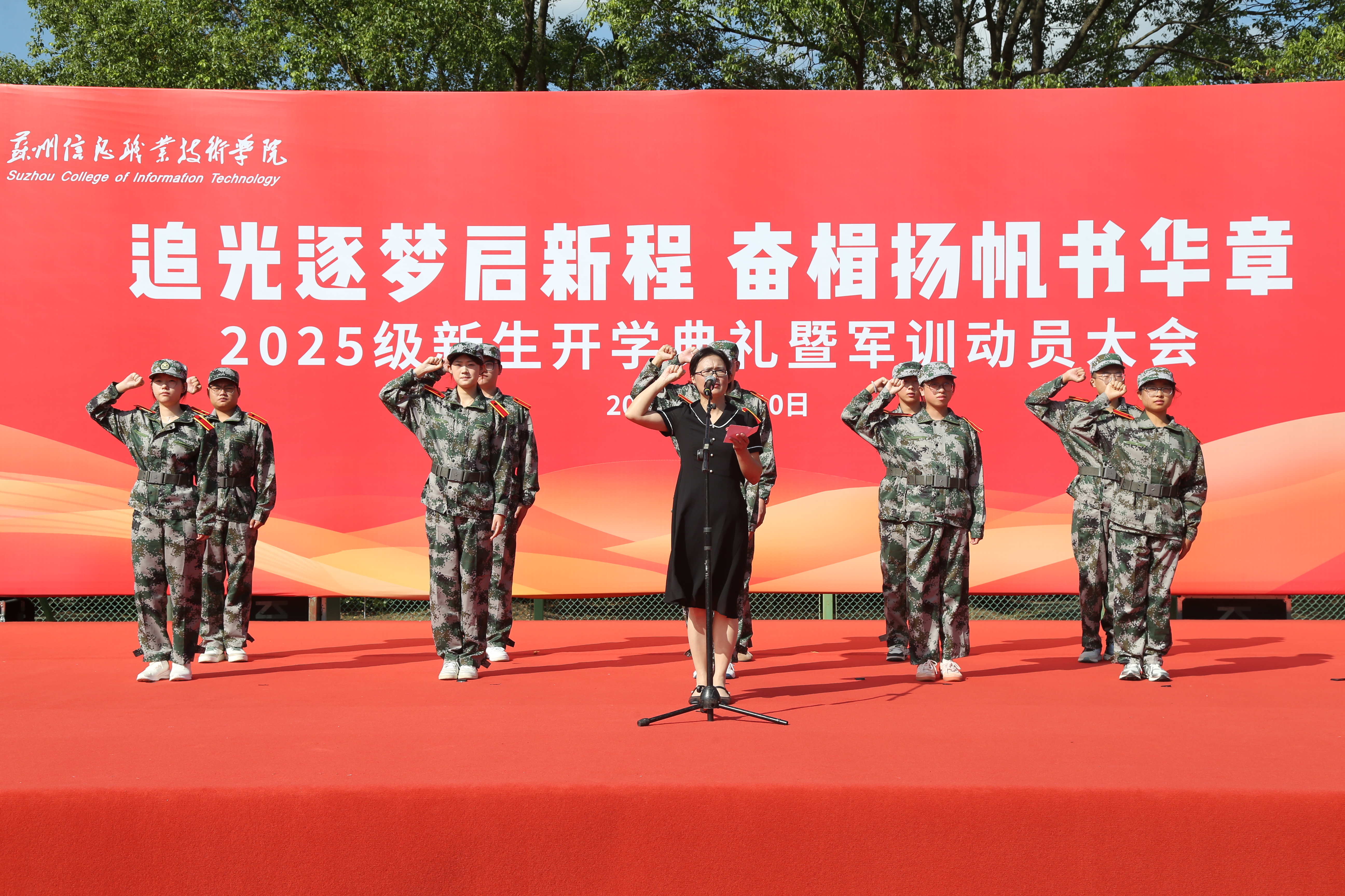 10月10日,我院隆重举行2025级新生开学典礼暨军训动员大会,欢迎来自全国各地的新同学加入苏州信息职业学院大家庭,开启求学逐梦的人生新旅程。参训部队领导和教官、学院全体教职工、2025级全体新同学出席大会。