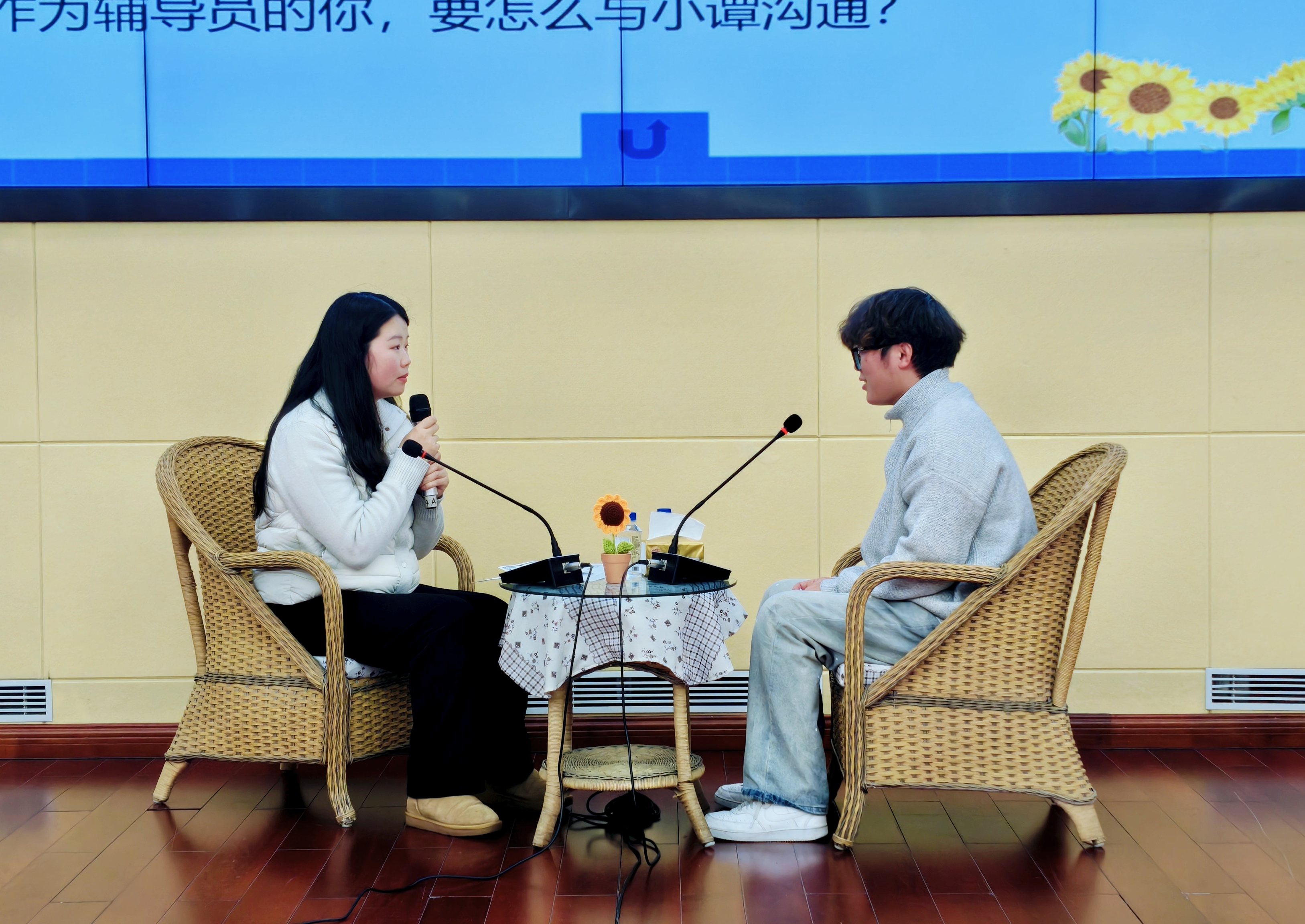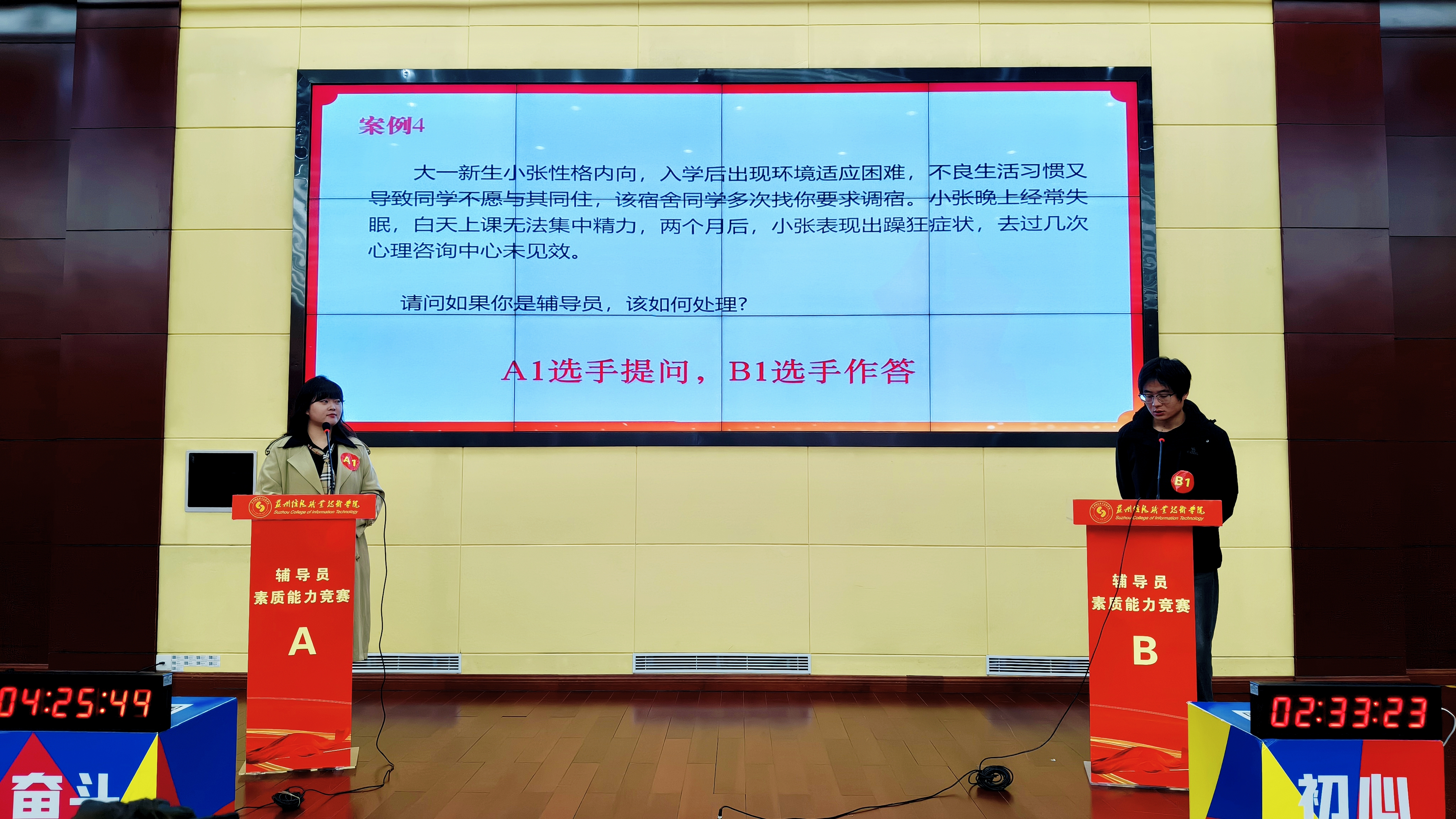 本次竞赛包含初赛和决赛两个阶段,经过各系初赛,共有10名辅导员脱颖而出,晋级决赛。决赛设置基础知识测试、案例研讨和谈心谈话三个环节。其中,基础知识测试于12月16日以笔试形式完成,重点考查辅导员的理论政策水平和业务知识储备。12月24日的决赛现场则集中呈现了“案例研讨”与“谈心谈话”两大实战环节,高度模拟真实工作场景,围绕学生心理健康、学业困扰、诚信教育、资助育人、班风学风、职业规划与就业指导、危机事件处理等,考辅导员的综合素养和解决实际问题的能力。