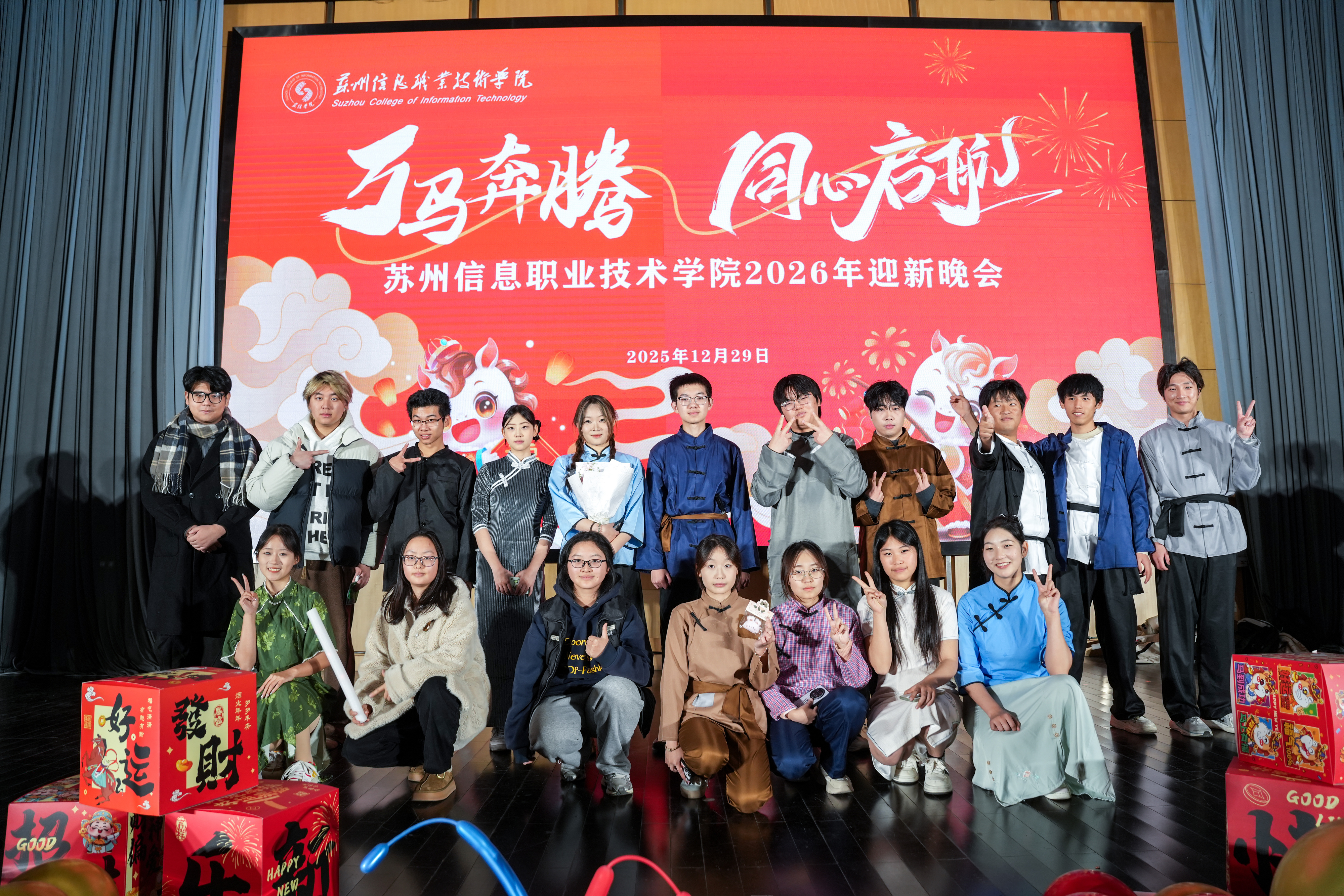 冬韵渐浓,岁华新至。12月29日,苏信校园星光璀璨,暖意融融,学院领导与师生代表齐聚一堂,共同赴约“万马奔腾、同心启航”2026年迎新晚会。15个文艺节目、2轮惊喜抽奖,以及互动游戏精彩呈现,这场交织着青春、热血与梦想的晚会,为旧岁画上圆满句号,为新年奏响奋进序曲。